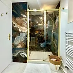 - ❓Quels équipements de salle de bains peut-on s'attendre à trouver dans cet appartement Loft 37 - Luxe Garden ?Cet appartement Loft 37 - Luxe Garden propose une salle de bains complète avec un sèche-cheveux, des peignoirs de bain et des draps de bain.